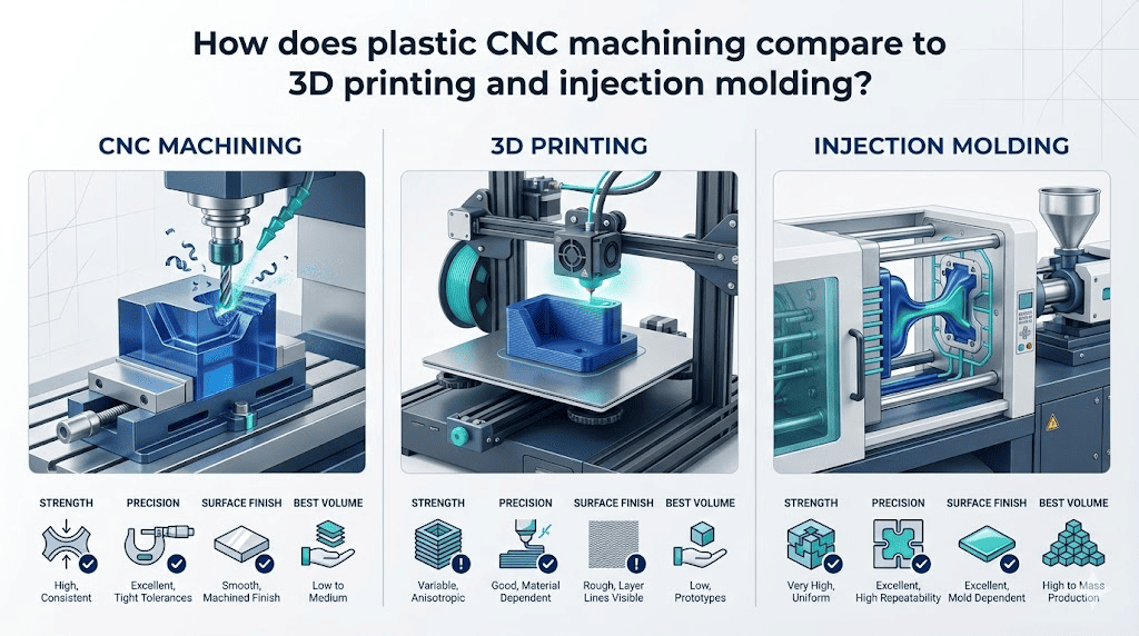 Plastic CNC Machining vs 3d Printing vs Injection Moulding